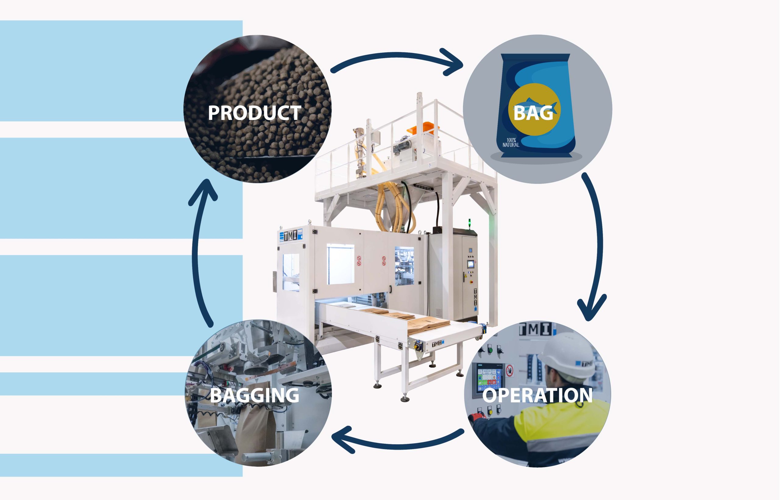At TMI, each project is designed with these four dimensions in mind. Our goal is to offer automatic bagging solutions that maximize the value of each application. For more information, please do not hesitate to contact us.